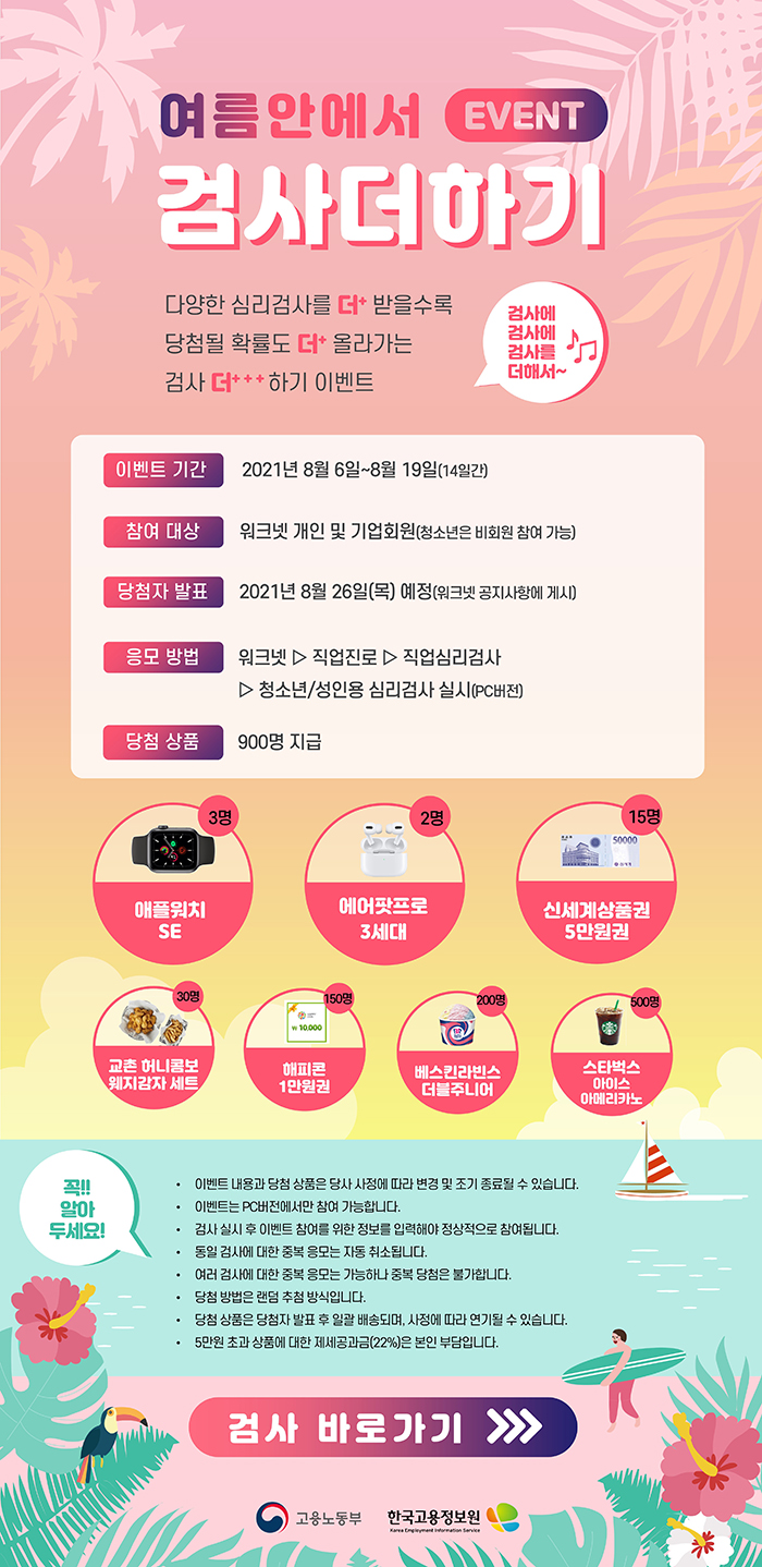 워크넷 직업심리검사 이벤트[~8.19.(목), 한국고용정보원]
