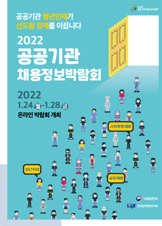 기획재정부가 주최하고 한국조세재정연구원이 주관하는 “2022 공공기관 채용정보박람회”는 NCS기반 블라인드 채용, 청년인턴, 고졸채용, 지역인재채용, 장애인채용 등 공공기관의 2022년도 채용정보와 취업준비생들에게 실질적으로 도움이 되는 다양한 프로그램을 제공하고자 마련한 행사입니다.